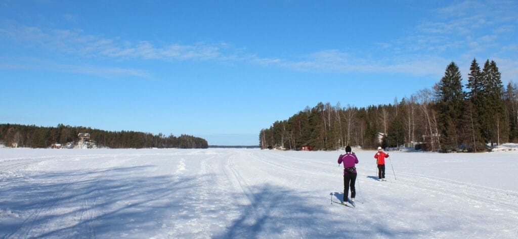 Parhaimpina vuosina saadaan Kurkiniemen kesäravintolalta jääreitti ulottumaan aina idyllisiin kirkonkylän maisemiin saakka. Jos jääreitin veto onnistuu, on silloin tarjolla ollut sekä kaksisuuntainen leveä luisteluhiihtoon soveltuva ura, jonka vieressä on talvikävelylatu sekä perinteiseen hiihtoon soveltuva latu-ura.